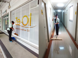 • เก็บกวาดขยะ• ดูดฝุ่นและทำความสะอาดประตูหน้าต่าง• ทำความสะอาดผิวโลหะและกระจก• ทำความสะอาดเฟอร์นิเจอร์และอุปกรณ์ต่างๆ• ทำความสะอาดด้วยน้ำยาทำความสะอาดพื้นโดยเฉพาะ• ทำความสะอาดห้องน้ำและห้องครัวด้วยน้ำยาทำความสะอาดและน้ำยาฆ่าเชื้อโรค• ทำความสะอาดรอยและคราบต่างๆ บนพื้น• กำจัดขยะและสิ่งปฏิกูล• ใช้เครื่องมือและอุปกรณ์สำหรับทำความสะอาดกระจกอาคารสูงโดยเฉพาะ• ทำความสะอาดกระจกโดยทีมงานสไปเดอร์แมน โรยตัวลงมาจากที่สูง• ทำความสะอาดกระจกด้วยน้ำยาคุณภาพสูง• ทำความสะอาดขอบเฟรมด้วยน้ำยาทำความสะอาดเฉพาะ• ป้องกันพื้นและต้นไม้บริเวณใกล้เคียงไม่ให้เกิดความเสียหายจากน้ำยาทำความสะอาด